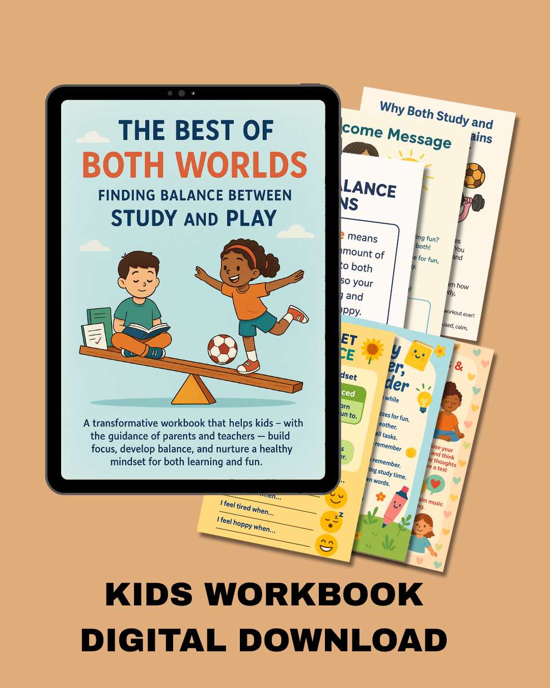 Study and Play Balance Workbook for Kids | The Best of Both Worlds | Printable Kids Workbook | Time Management & Focus Planner | Digital PDF
